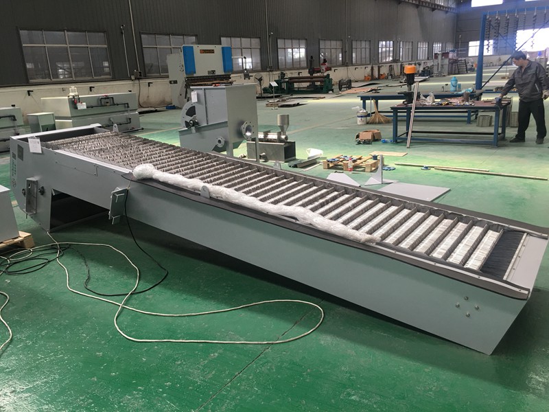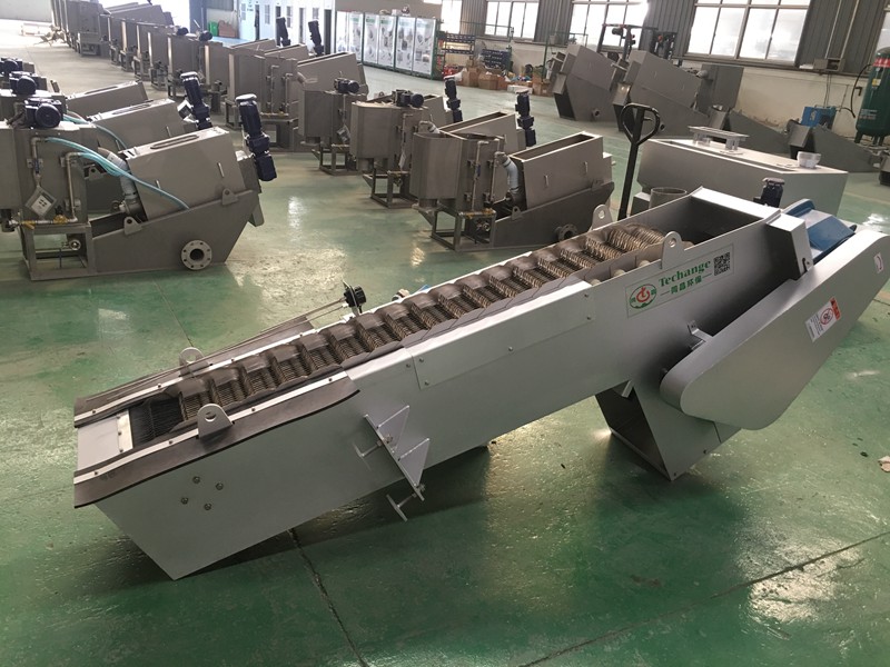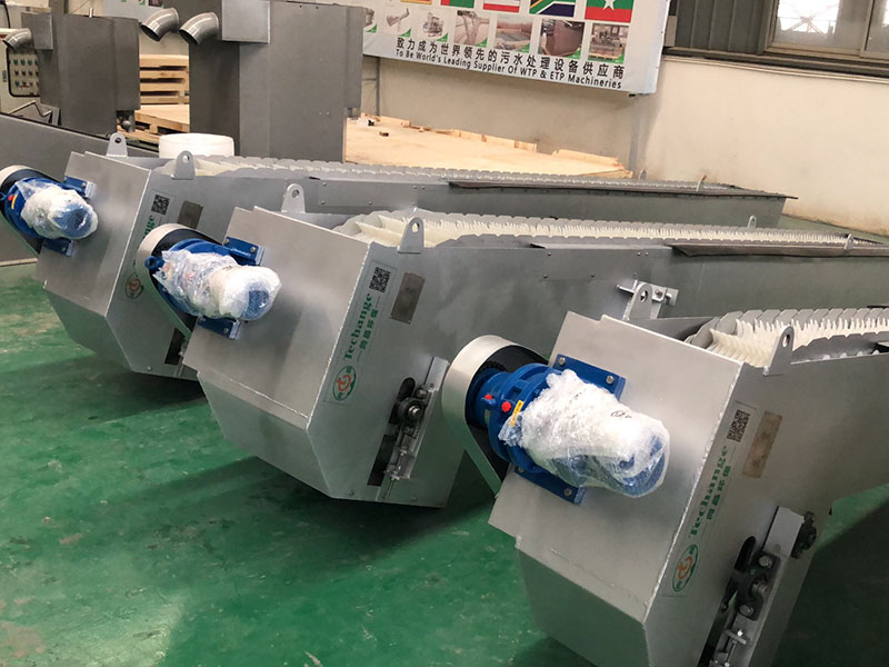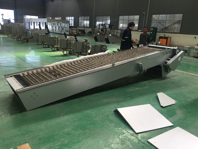 在鏈條軸上形成封閉式的環(huán)形齒耙鏈,整個耙齒鏈在傳動鏈輪的驅(qū)動下自下而上做連續(xù)循環(huán)式運動,將截留在粑齒上的固體懸浮物從污水中輸送到地面或平合上方,