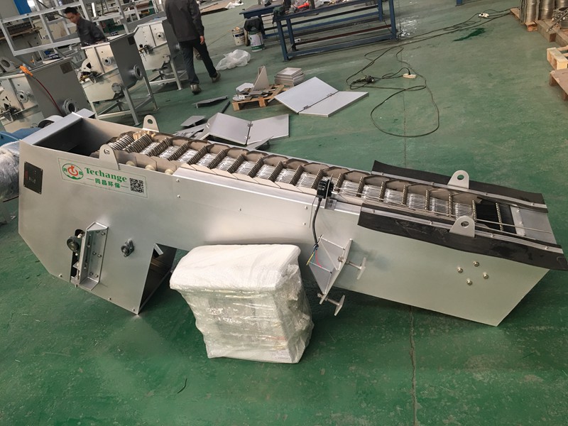 并在耙齒旋轉(zhuǎn)嚙合的過程中將物料清除,以達到保護水泵和減輕后續(xù)工序處理負荷的目的。